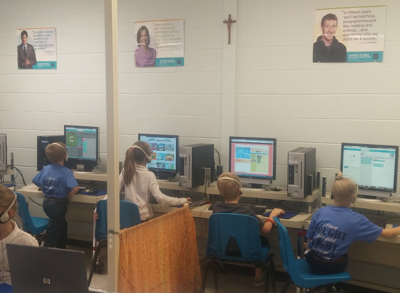 Holy Family Elementary is participating in the global #HourOfCode December 4-8. Schools around the world are getting a taste of programming as an introduction to STEM (Science Technology Engineering & Math) focus. People of all ages are welcome to try their hand at learning how to code: https://hourofcode.com/us/learn