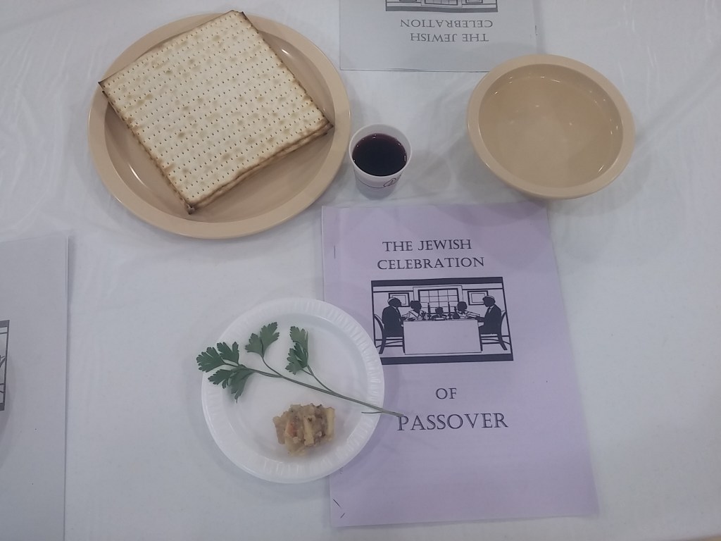 Father Wayne Pavela led Holy Family grades 7-12 and faculty in the celebration of Passover. A full traditional meal featuring roast beef was prepared by the kitchen staff. The Passover script concluded with a Christian Seder.