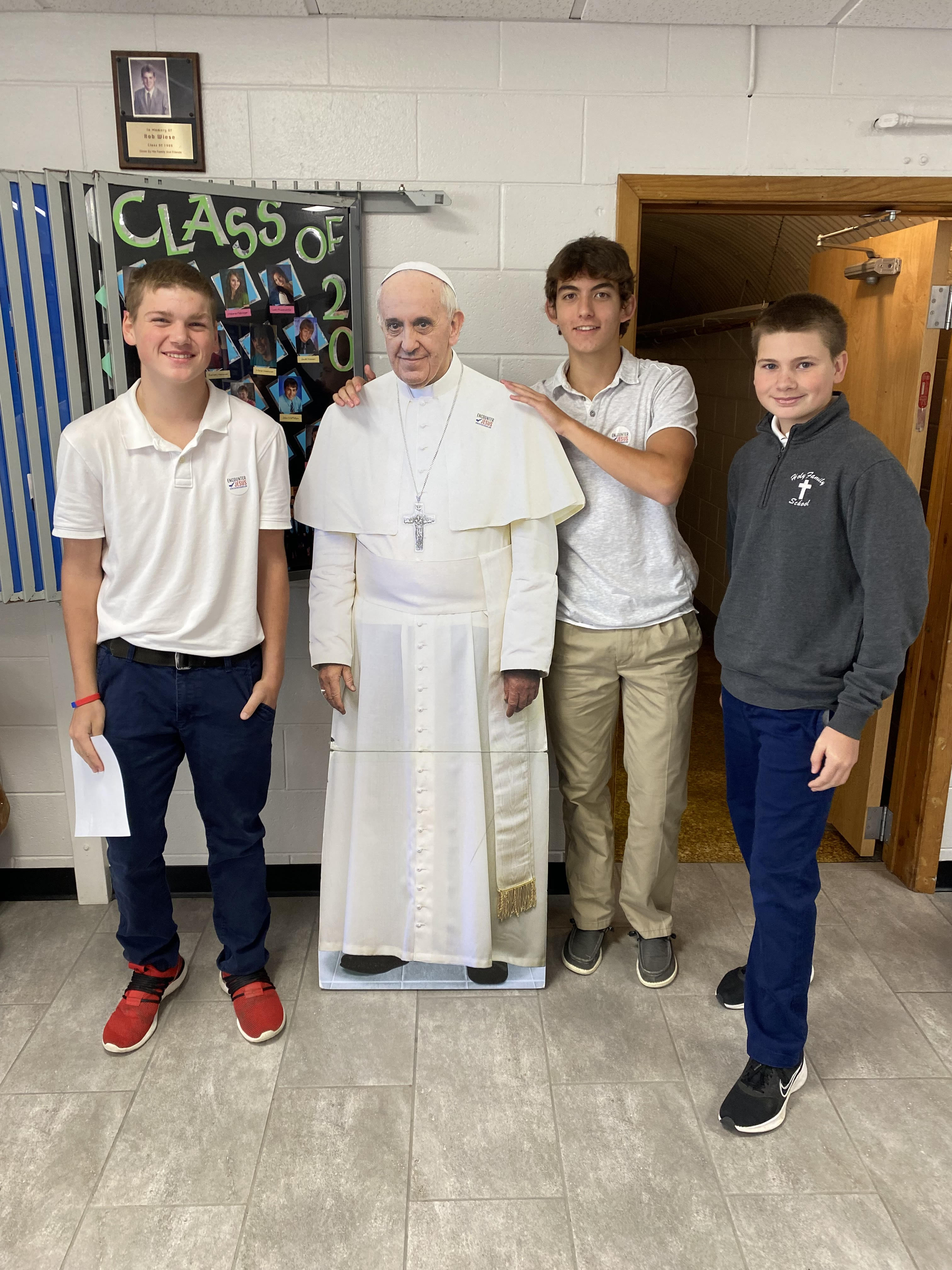 Spirit Catholic Radio visited our school this morning. It was a great day to talk about our school and our faith! They even brought along a life size cutout of the pope for photos with our students. Thank you Mr. Bishop and Miss Wiese for all your work setting this up!