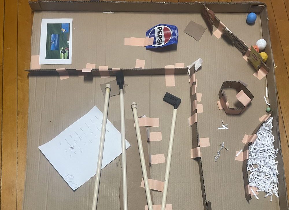 5th and 6th graders are working in the STEAM center on mini golf course holes this quarter. Science – Force, Mass, Density dealing with different types of balls and putters. Technology – designing putters in Tinker-CAD and printing them with the 3D printer. Engineering/Art – Hole and putter design. Random shape was selected and teams added obstacles. They were limited to some cardboard, labels, and shredded paper. Math – using Mean, Median, and Mode to help determine the ‘Par’ for their hole (by hand and with their Chromebooks). The teams also designed a ‘sign’ in google slides for their hole showing the starting point, name chosen for their hole, par, and team member names.